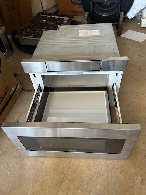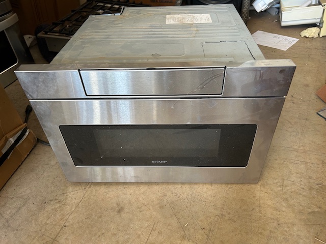 Used (5 year old) Sharp 24 Inch Microwave Drawer with Easy Touch™, Hidden Control Panel, Sensor Cook, Design Flexibility, Timer, 1,000 Watts, 1.2 cu. ft. Capacity, Reheat and Keep Warm: Stainless Steel. Fully checked and works perfectly. 90 day local warranty