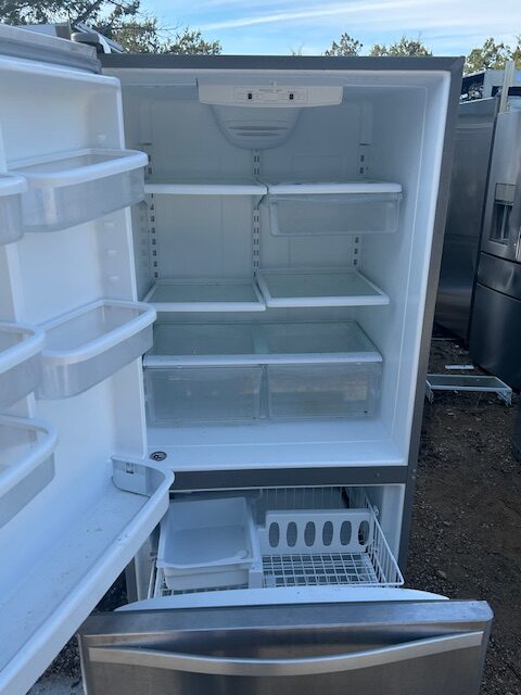 33 Inch Bottom-Freezer Refrigerator with FreshFlow Preserver, Accu-Chill System, Adaptive Defrost, SpillGuard Glass Shelves, Humidity Controlled Crispers, LED Lighting, Ice Maker and Energy Star Rated: Stainless Steel. Fully checked. makes ice. We replaced the circuit board in this unit. Works perfectly. 90 day warranty